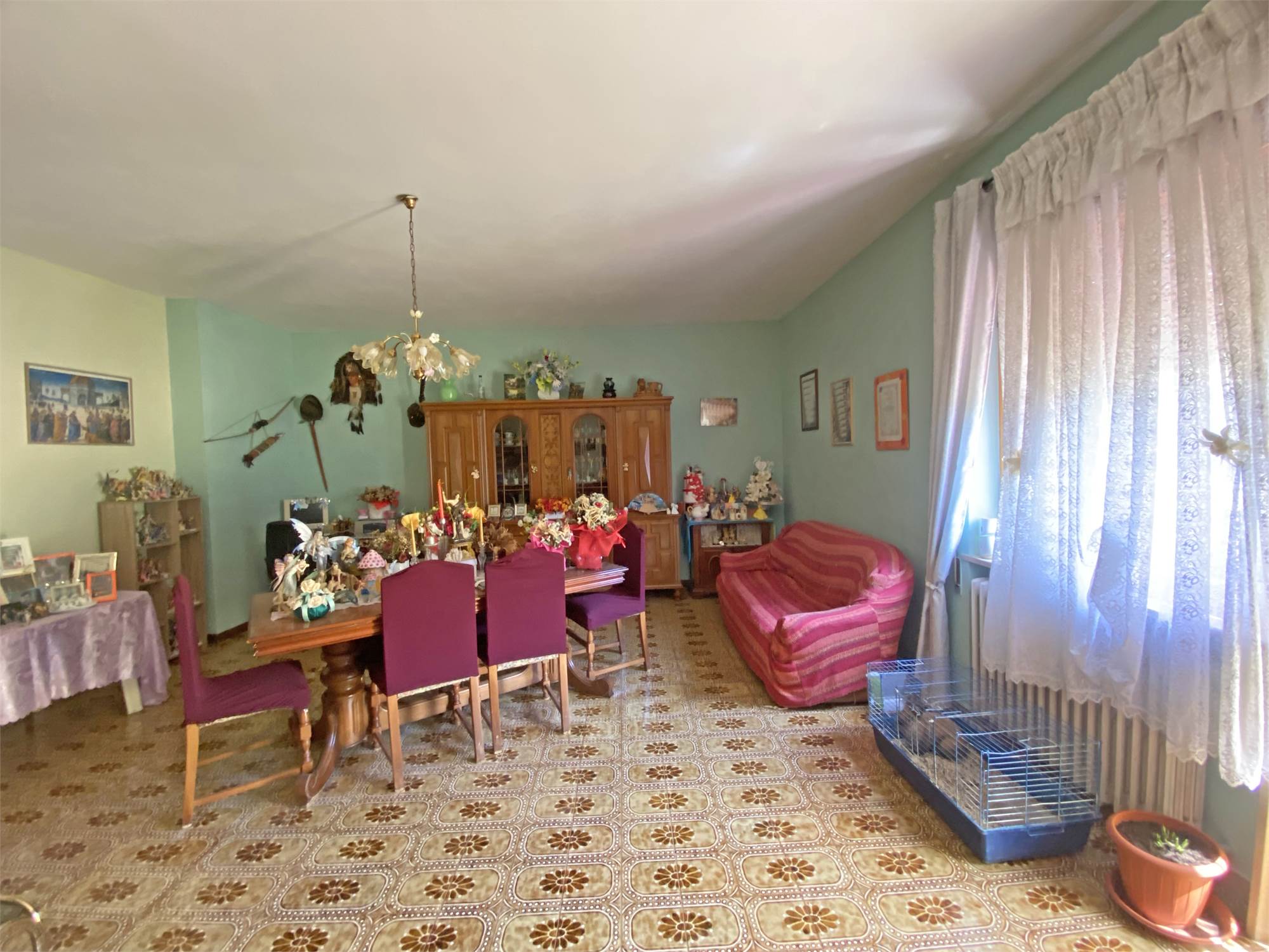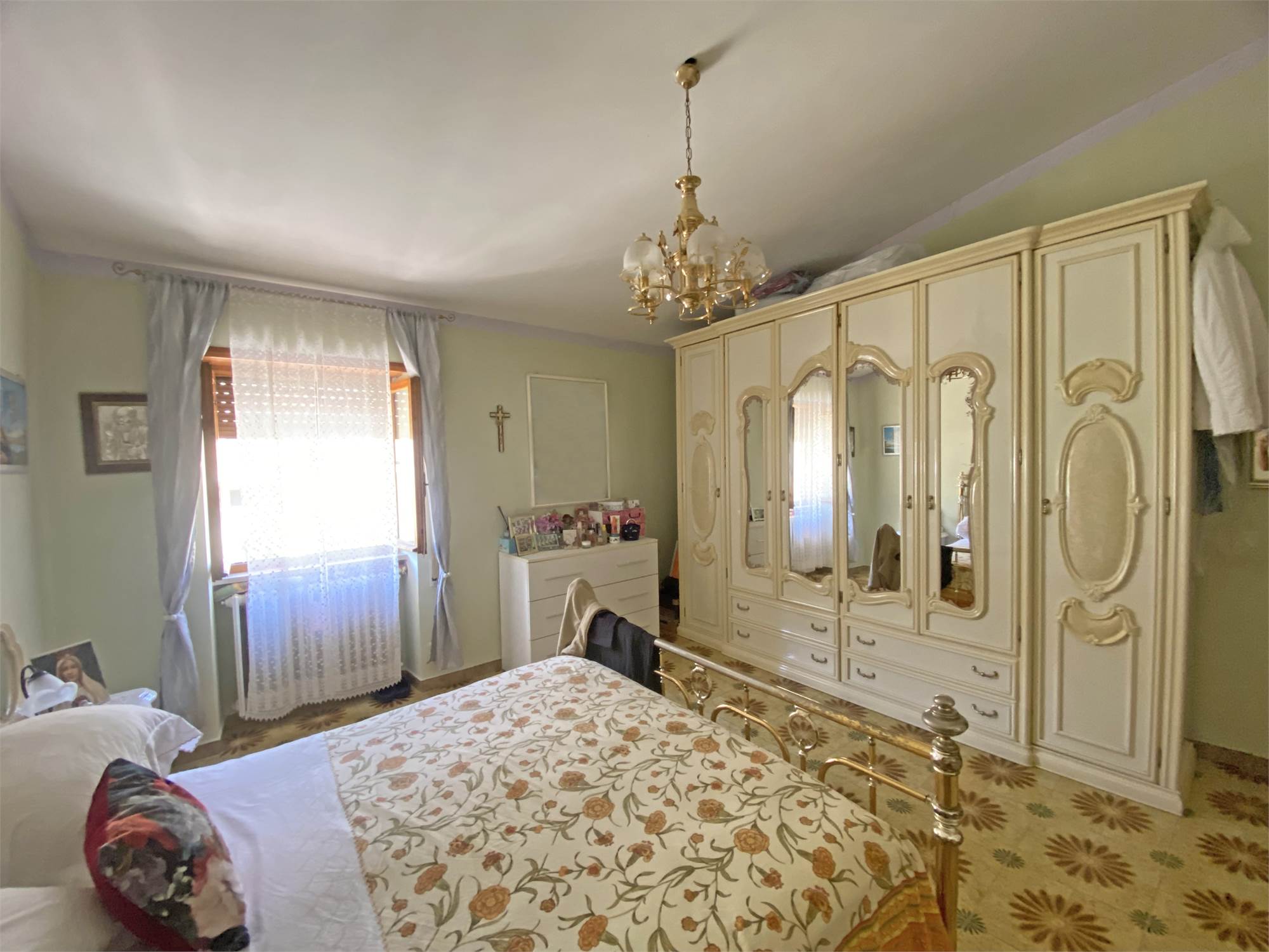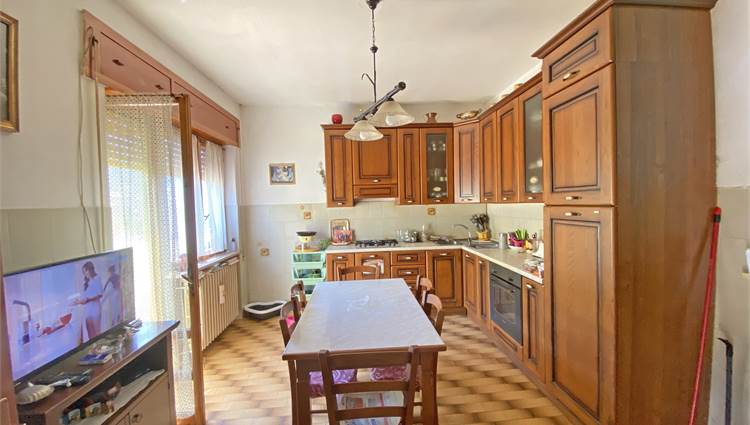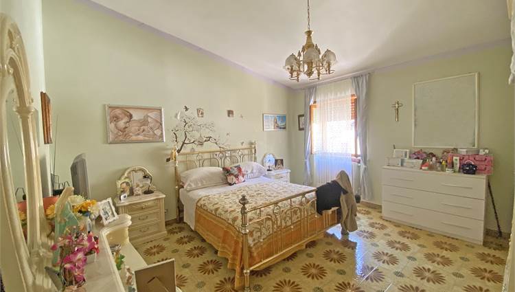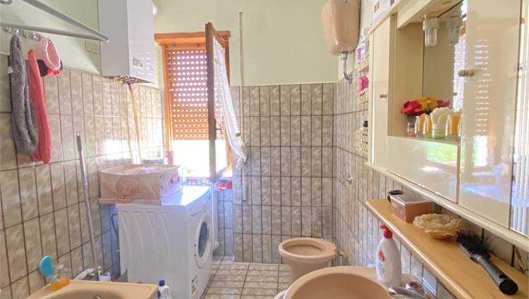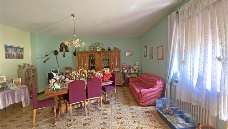 La struttura, solida e ben impostata, è dotata di un'ampia scala esterna che ci conduce all'ingresso con accogliente terrazzino, e quindi all'appartamento di oltre 140 mq, capace di offrire spazi di ampio respiro: cucina, salone, due camere da letto matrimoniali, una camera singola e un bagno si offrono alla vista, luminosi e generosi nella metratura. Le rifiniture sono discrete, tali da rendere immediatamente abitabile la nostra proposta di acquisto. Completano la proprietà la cantina e il garage al piano terra, e aggiungono ulteriore valore alla soluzione abitativa che vi descriviamo.