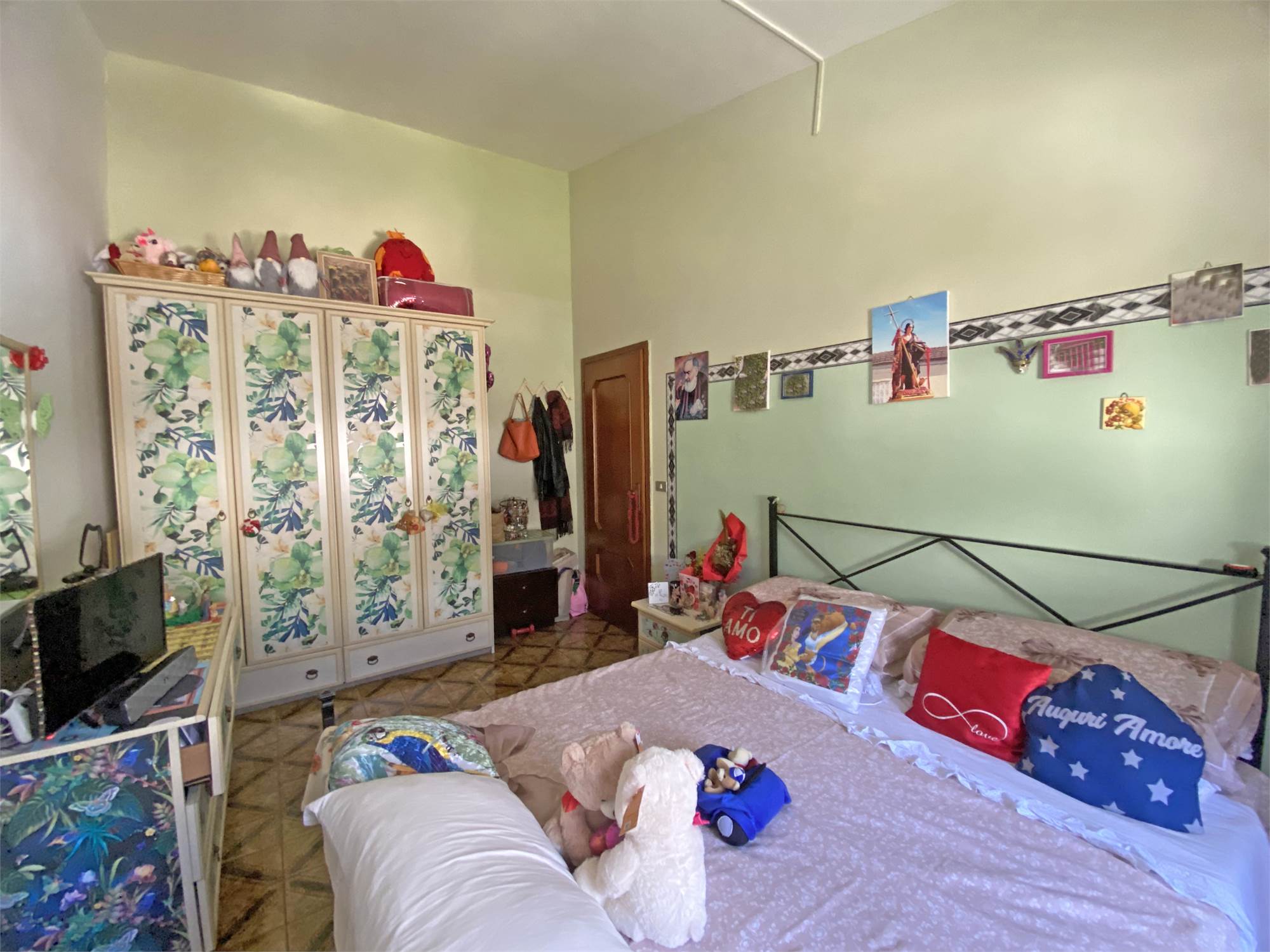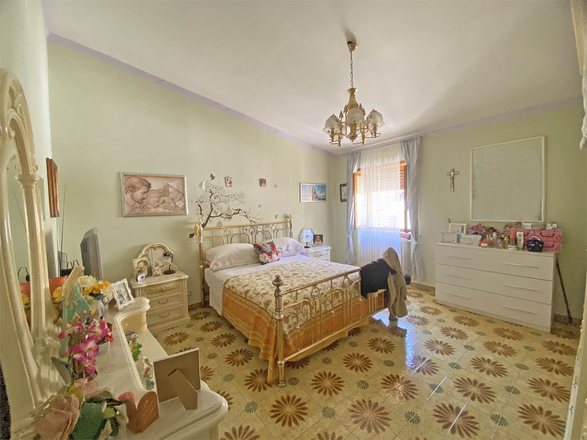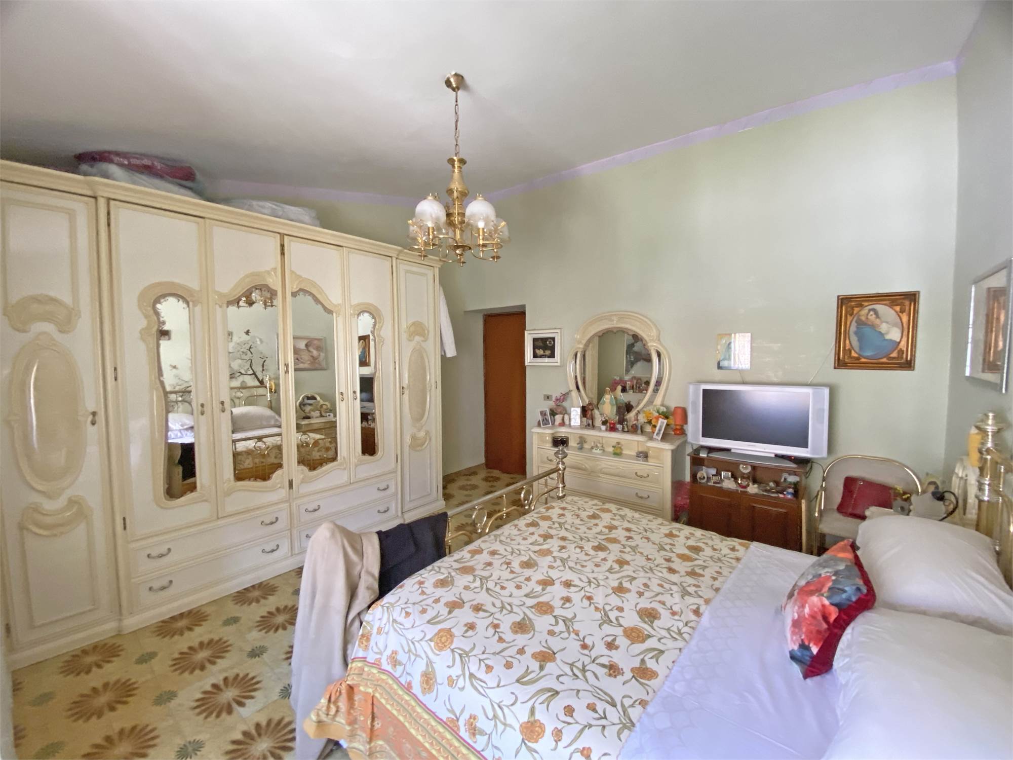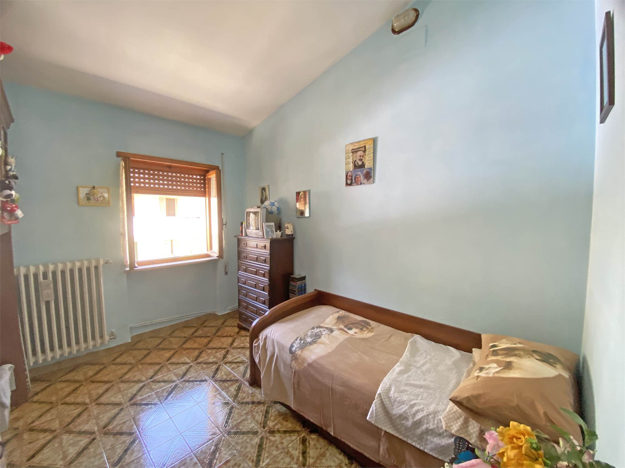 La struttura, solida e ben impostata, è dotata di un'ampia scala esterna che ci conduce all'ingresso con accogliente terrazzino, e quindi all'appartamento di oltre 140 mq, capace di offrire spazi di ampio respiro: cucina, salone, due camere da letto matrimoniali, una camera singola e un bagno si offrono alla vista, luminosi e generosi nella metratura. Le rifiniture sono discrete, tali da rendere immediatamente abitabile la nostra proposta di acquisto. Completano la proprietà la cantina e il garage al piano terra, e aggiungono ulteriore valore alla soluzione abitativa che vi descriviamo.