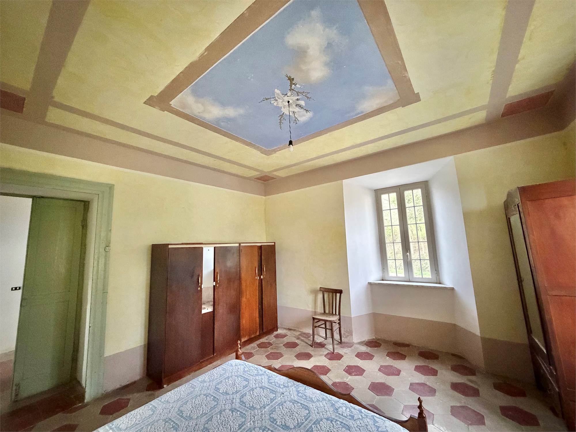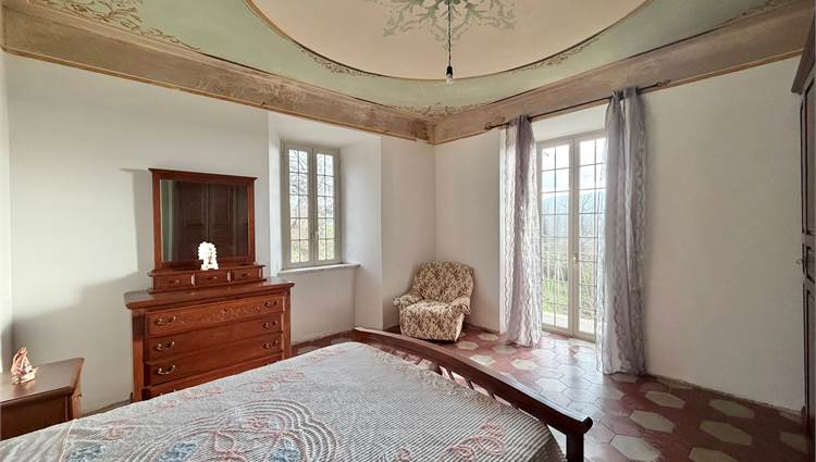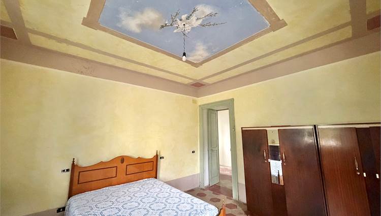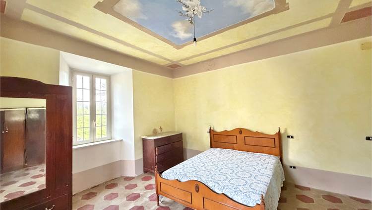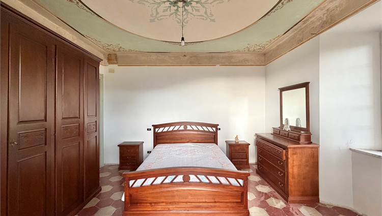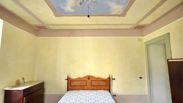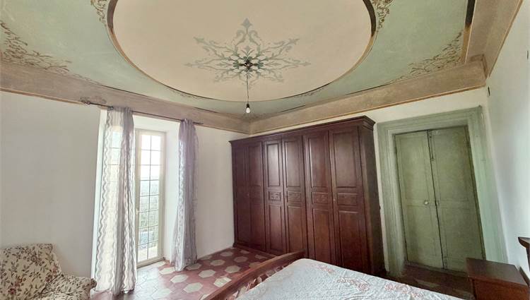 Attraverso una comoda scala si accede alla zona notte, dove troviamo due camere da letto di generose dimensioni, impreziosite da splendidi affreschi sui soffitti che conferiscono agli ambienti un fascino unico e senza tempo. Completa il piano un bagno con doccia e un comodo balcone.