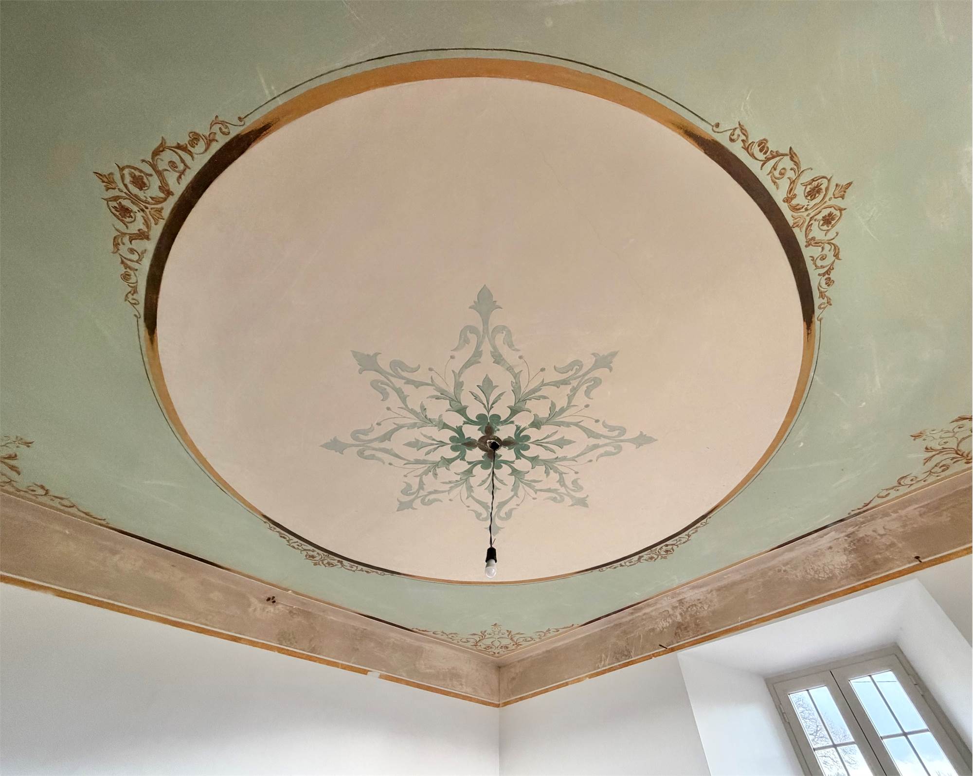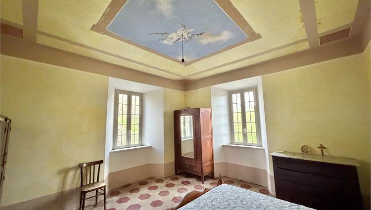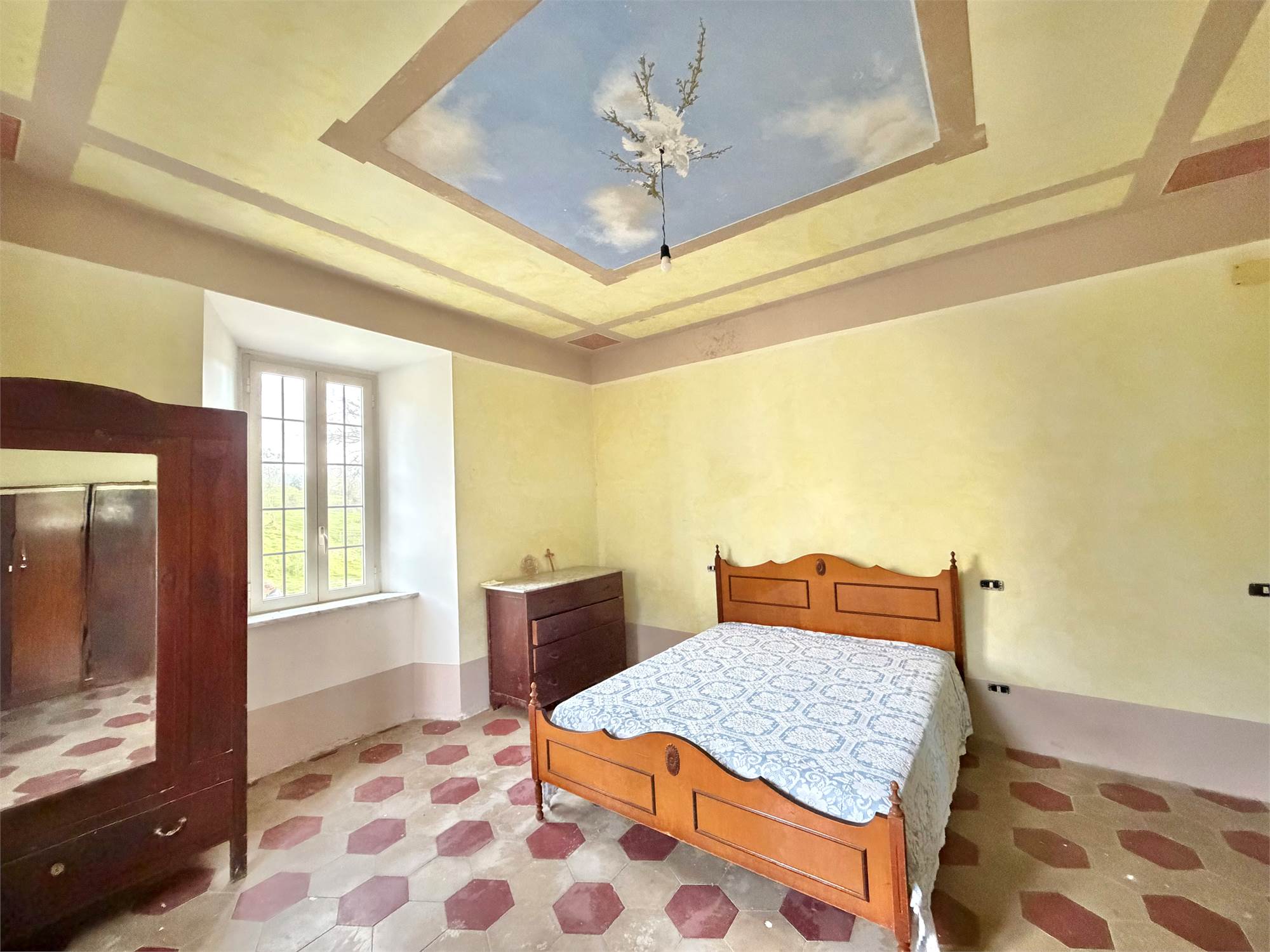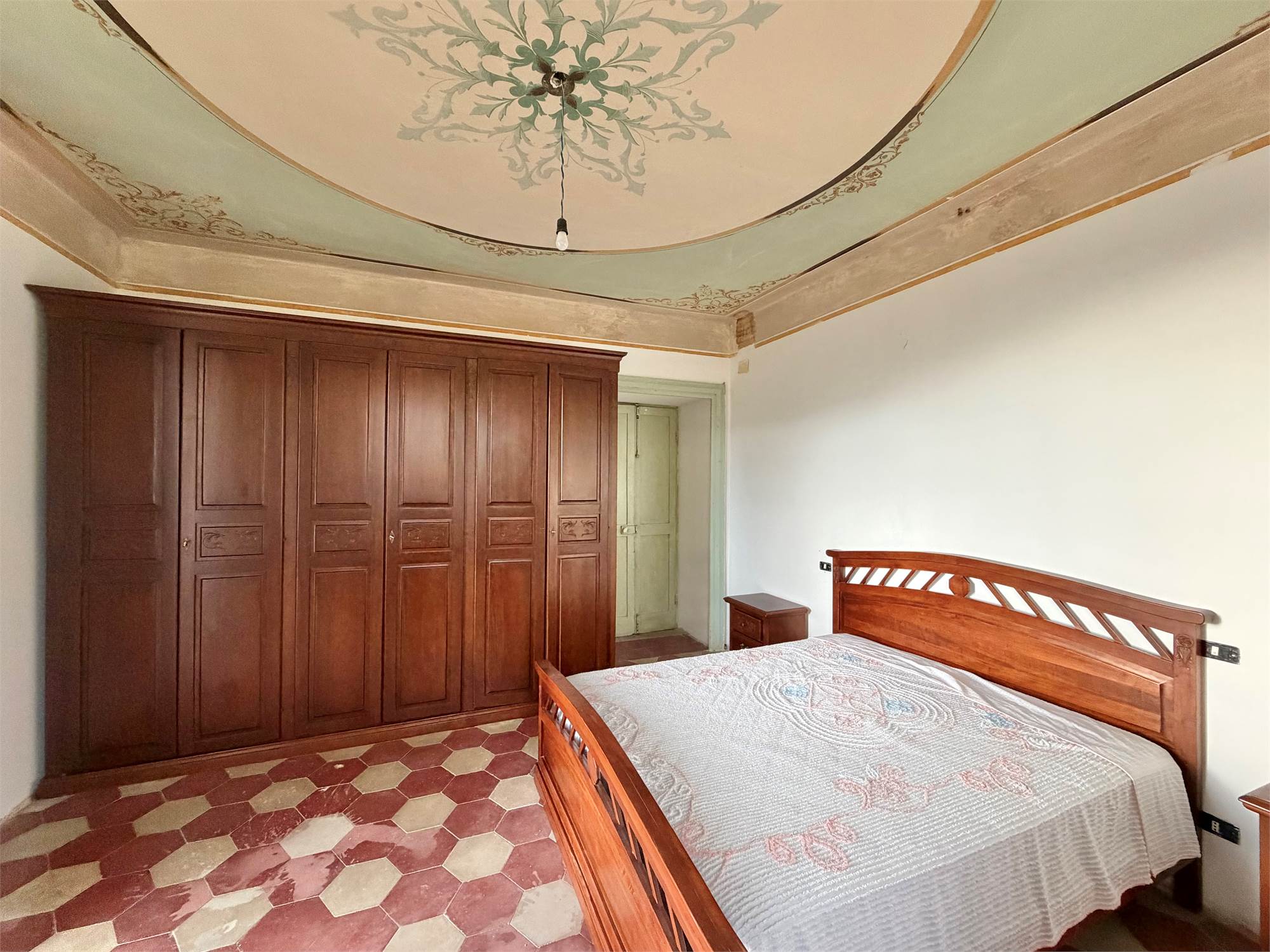 Attraverso una comoda scala si accede alla zona notte, dove troviamo due camere da letto di generose dimensioni, impreziosite da splendidi affreschi sui soffitti che conferiscono agli ambienti un fascino unico e senza tempo. Completa il piano un bagno con doccia e un comodo balcone.